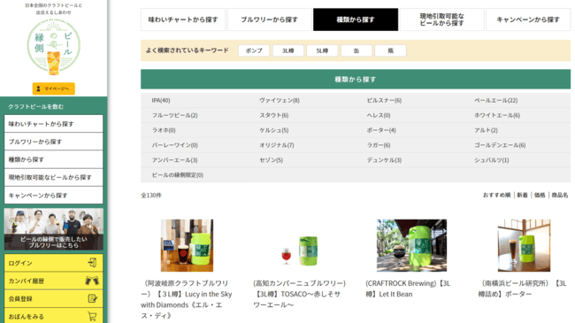 -種類から探す:多種多様なビールの種類からビールを検索できます。