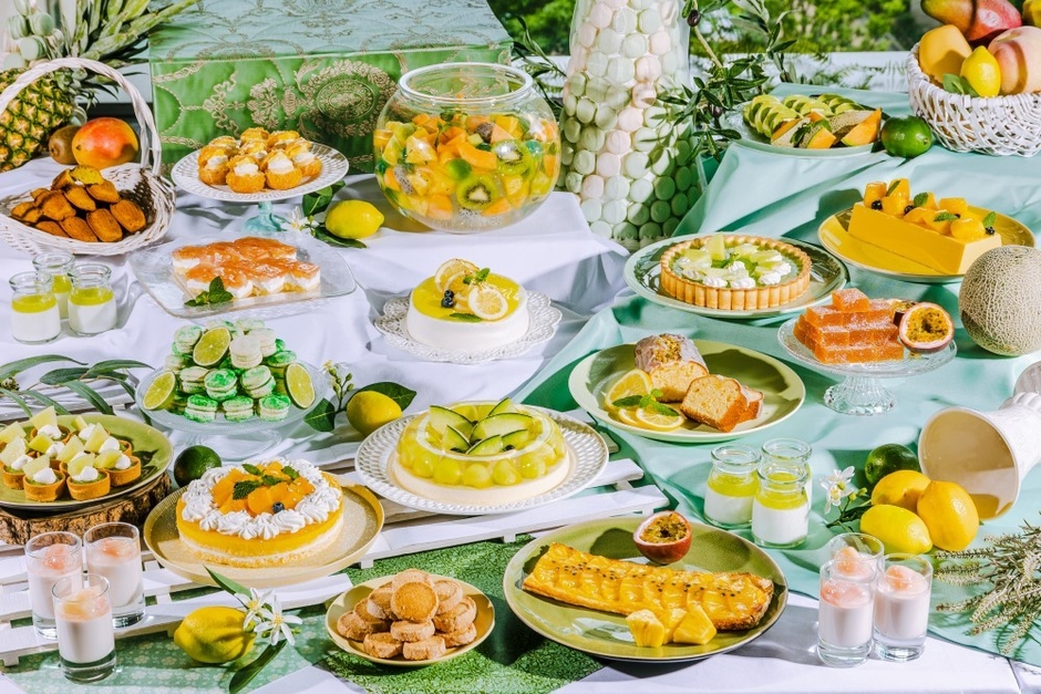 少し大人な味わいの「メロンと白ワインのリースケーキ」やマンゴーの香りと舌触りが楽しめる「イタリアン マンゴープリン」、フレッシュな雰囲気がひときわ目を引く「レモンショートケーキ」など、カラフルで爽やかなスイーツの数々をご用意いたしました。