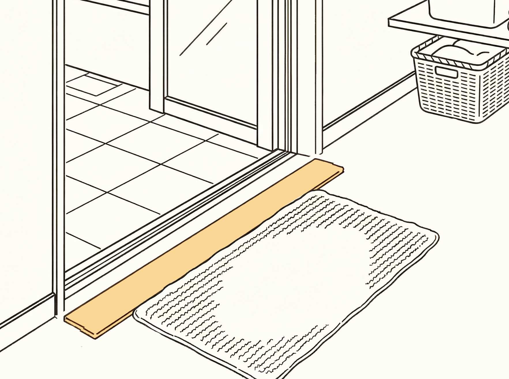 ・浴室前のすき間に敷くだけで水濡れ広がりを防止