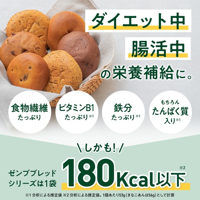 食物繊維や鉄分、ビタミンB1がたっぷりで、もちろんたんぱく質入り、カロリーは1袋161kcalで糖質オフ※2だから、我慢せず食べ続けられるカラダにやさしいパンです。