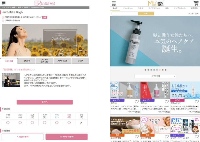 美容室の“予約”だけじゃない「B-Reserve ICHIBAN MALL」 (ビーリザーブイチバンモール) 情報発信とオンラインショップを充実し、8月1日(月)公式オープン