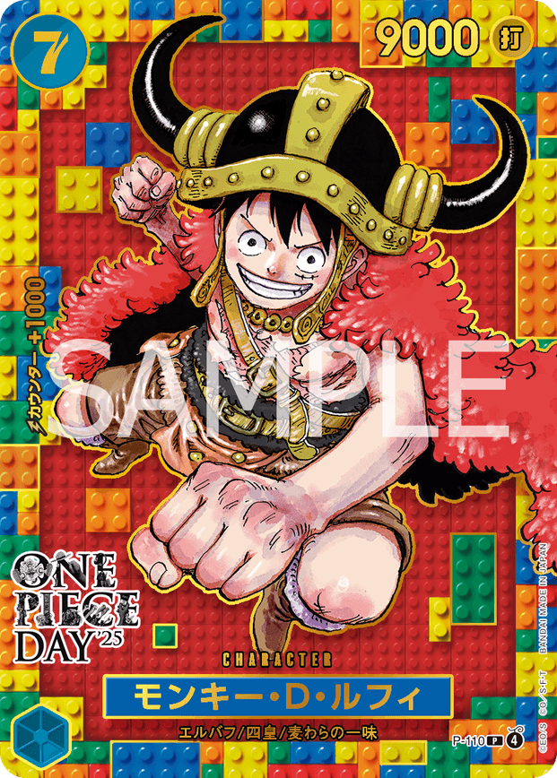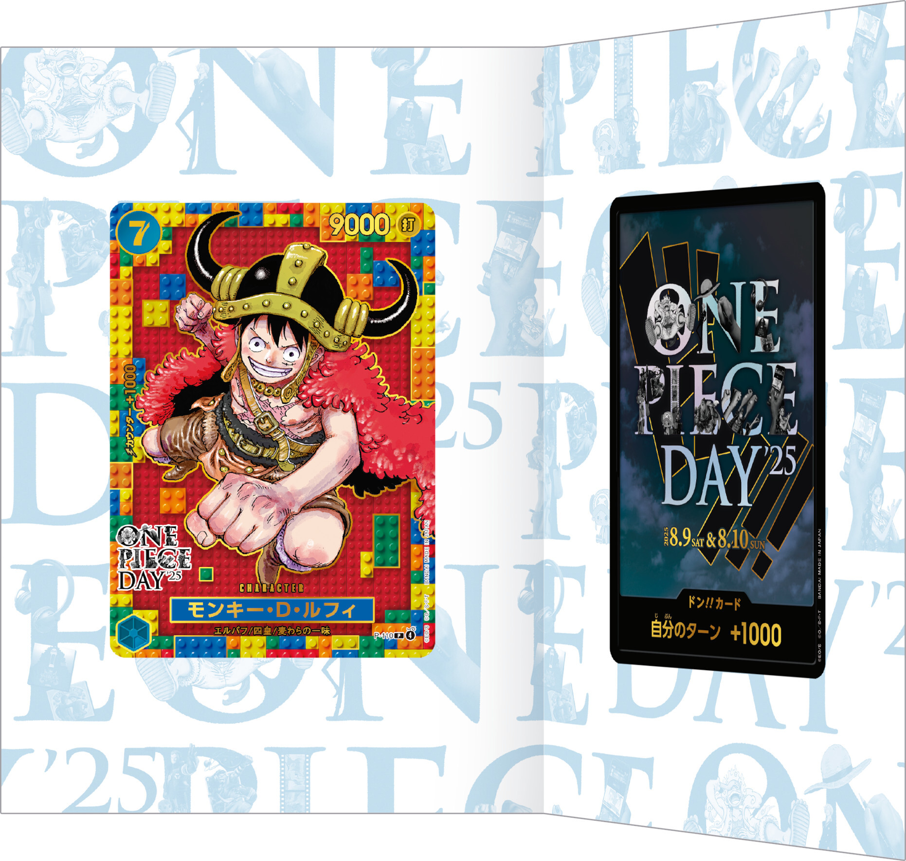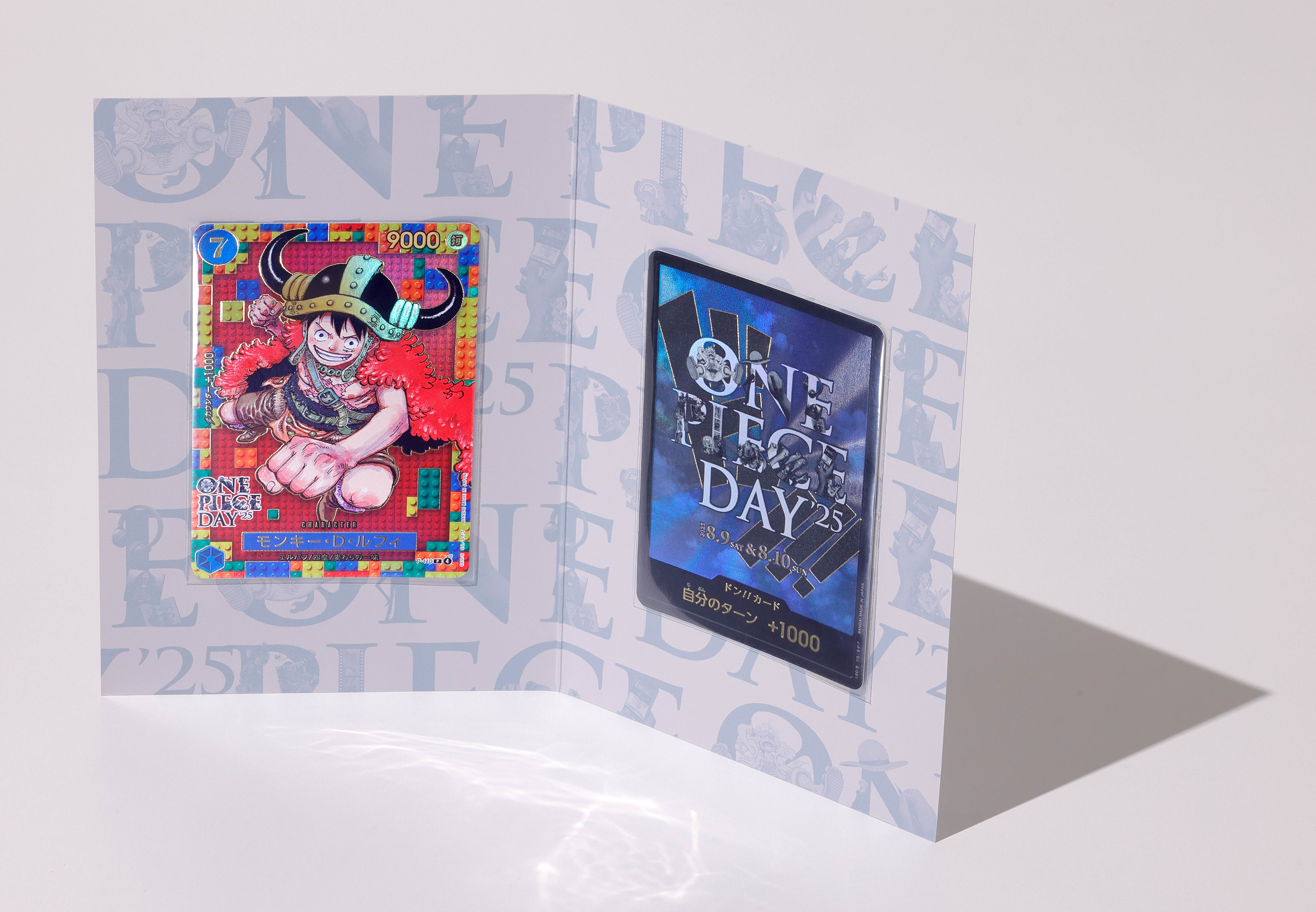 ONE PIECE DAY'25のロゴが描かれた「ドン!!カード」と、エルバフ編の「モンキー・D・ルフィ」の「キャラクターカード」が専用台紙にセットされた商品となります。