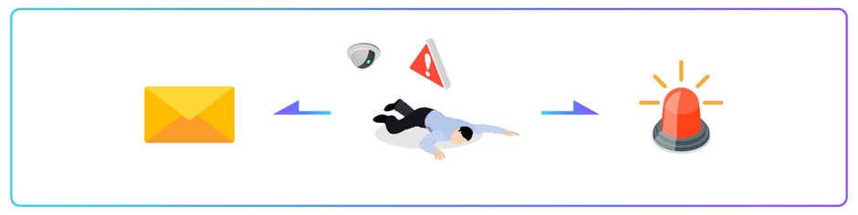 当社の長年にわたるAI開発の知見を活かし、本アプリのために独自開発したAIモデルにより、人の転倒を高精度に検知。検知後は即座にメールやアラート機器等へ通知することで、迅速な対応をサポートします。