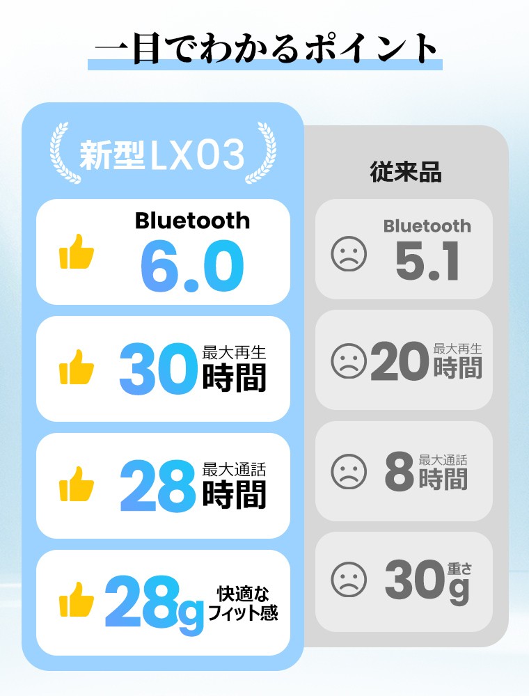 高価すぎるイヤホンではなく、毎日気軽に使えて、しっかり満足できるものを選びたい。LX03は、そんなニーズに応える高コストパフォーマンスモデルです。これからワイヤレスイヤホンを選ぶ方にもおすすめの一台として、新しい音のある暮らしを提案します。