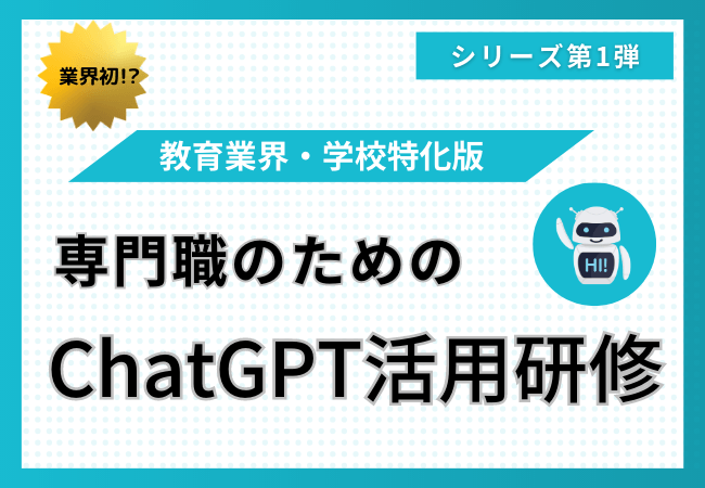 専門職ChatGPT活用研修シリーズの第一弾として、 教育業界・学校特化版をリリースしました