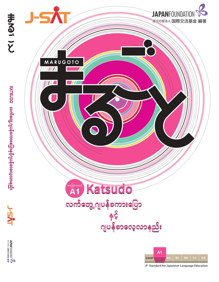 このような高まる期待におこたえすべく、国際交流基金とJ-SATが協力をし、コミュニケーション目的型の新しいタイプの日本語教科書「まるごと 日本のことばと文化」のミャンマー語版を出版します。文法や文型の知識だけ増やしても日本語を自由に使えるようにはなりません。「まるごと」は、日本語が使われる場面ごとに必要とされる「can do」を目標にして、日本語を使ってできることをひとつひとつ増やしていくことをサポートします。また、コミュニケーションの土台となる日本の文化も、フルカラーの写真やイラストを通して楽しみながら学べるように工夫されています。