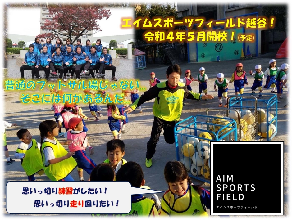有限会社エイムは、令和4年5月(予定)に越谷市大間野町に【エイムスポーツフィールド越谷】をオープンします。