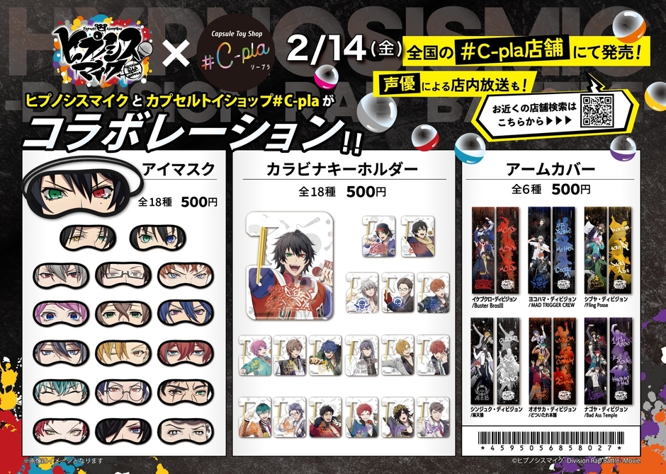 カプセルトイ専門店「#C-pla」の運営などアミューズメント事業を展開する株式会社トーシン(本社:北海道帯広市、代表取締役:宮本 達也)は、「ヒプノシスマイク -Division Rap Battle-」とコラボし、2025年2月14日(金)より全国の#C-pla限定でオリジナル商品を発売します。