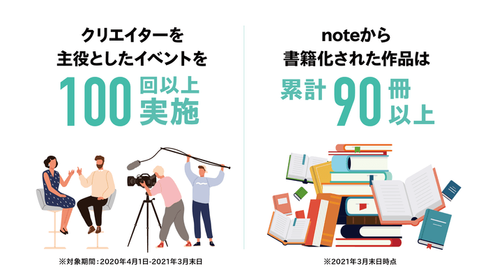 noteはクリエイターが活躍する機会、クリエイター同士やクリエイターとファンとの交流の場として、さまざまなイベントを開催しています。2020年6月に開設したイベントスペース「note place」を発信拠点として開催したオンラインイベントは、1年で100回以上配信されました。