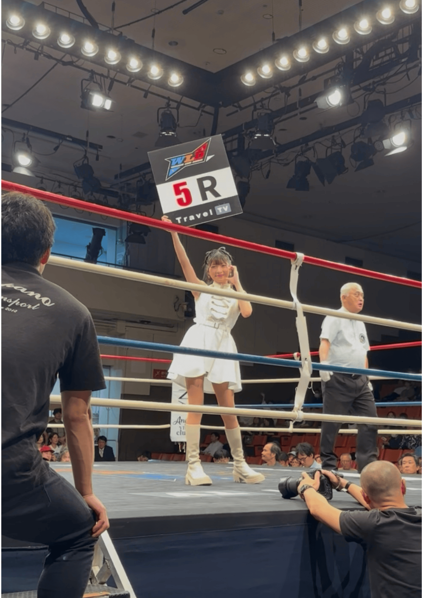 2025年10月15日(水)、東京・後楽園ホールで開催されたプロボクシング大会「WLD Vol.4」に、現役中学2年生のMIUさん(13歳)が史上最年少ラウンドガールとして再び登場しました。前回の「WLD Vol.3」に続き2度目の出演となる今回は、衣装の生地選びから自身で関わった“純白コスチューム”でリングに立ち、会場の視線を一身に集めました。