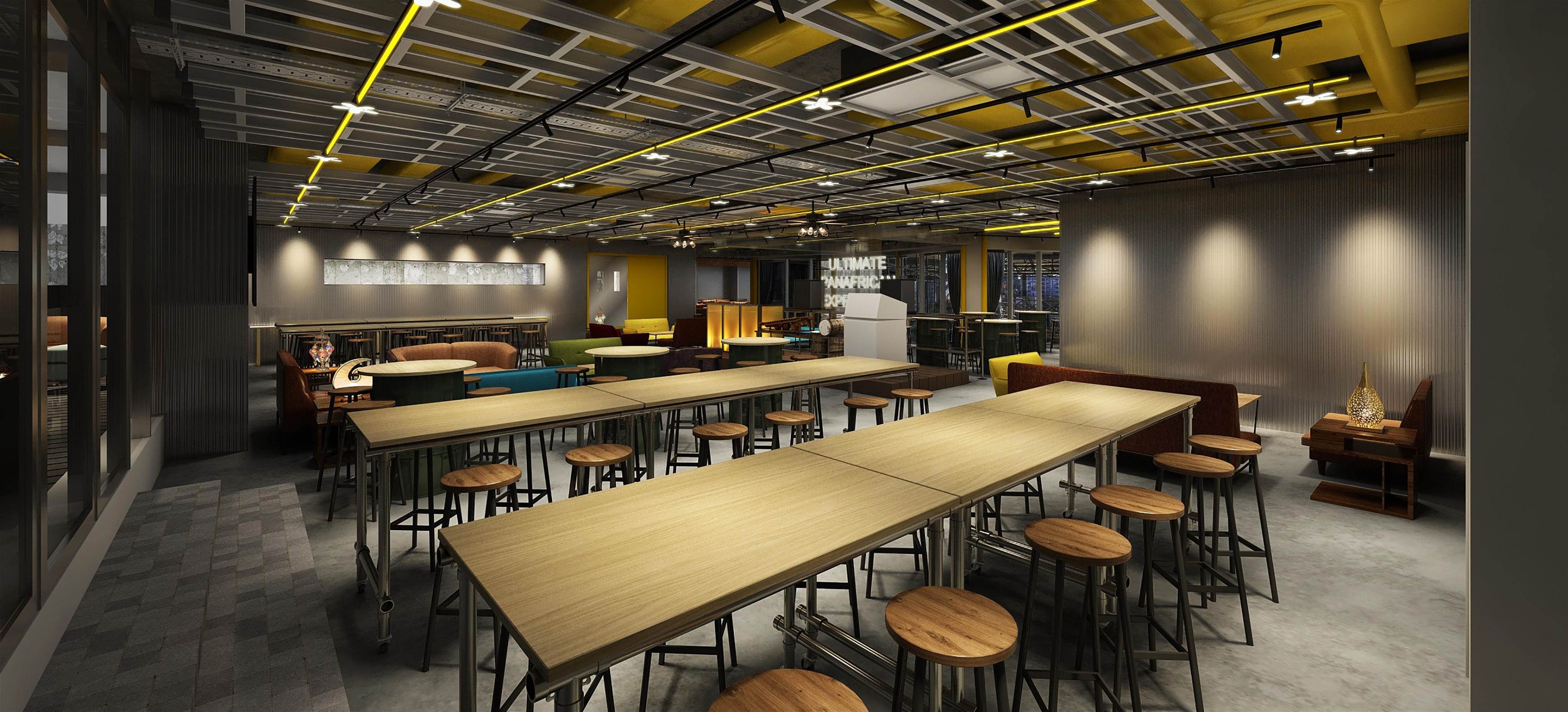 「五感で感じる、モダン・アフリカの鼓動」をコンセプトに、広大なアフリカを感じられるオリジナルメニューやドリンクと、毎日開催するアフリカンミュージシャンによるジャンベ(太鼓)やバラフォン(木琴)の生演奏、週末にはアフロビーツで踊れるナイトクラブから五感でアフリカを感じていただけます。