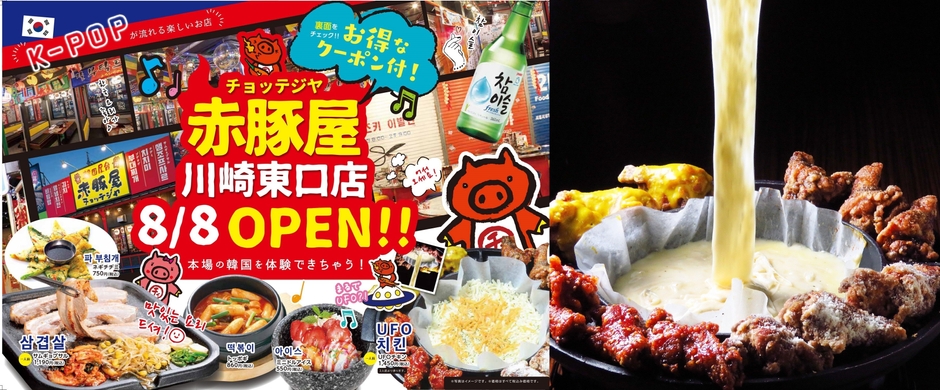 東海エリアで人気の韓国料理店「赤豚屋」(チョッテジヤ)が 神奈川・川崎駅近くに8月8日(日)にオープン!関東初上陸!