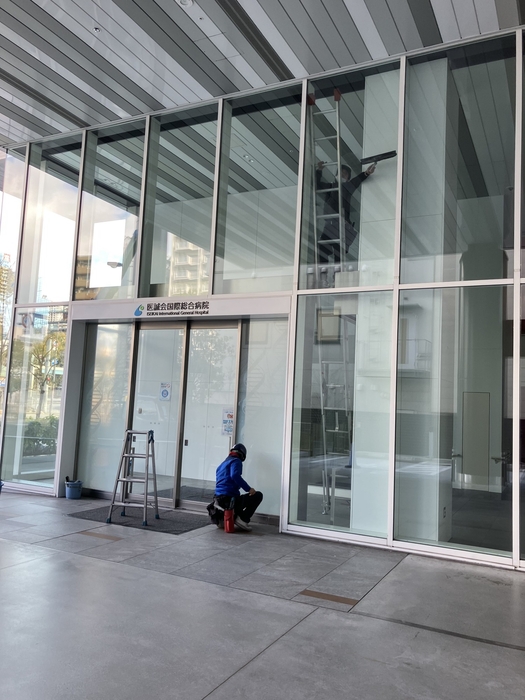 2025年2月11日には大規模な外装清掃を実施しました。渡り廊下やアートストリート、テナントエリアの外装ガラス、地上・高所看板、さらには北棟1階エントランスのガラス清掃など、普段の清掃では手が届きにくい箇所を徹底的に清掃しました。