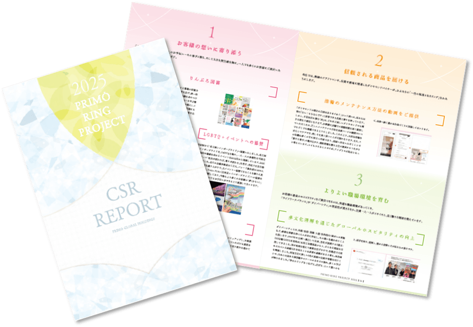 ブライダルジュエリーの企画・販売事業を展開するプリモグローバルホールディングス株式会社(本社:東京都中央区、代表取締役社長:澤野直樹)は、2025年度におけるCSR活動をまとめた報告書『PRIMO RING PROJECT CSR REPORT』を発行いたしました。