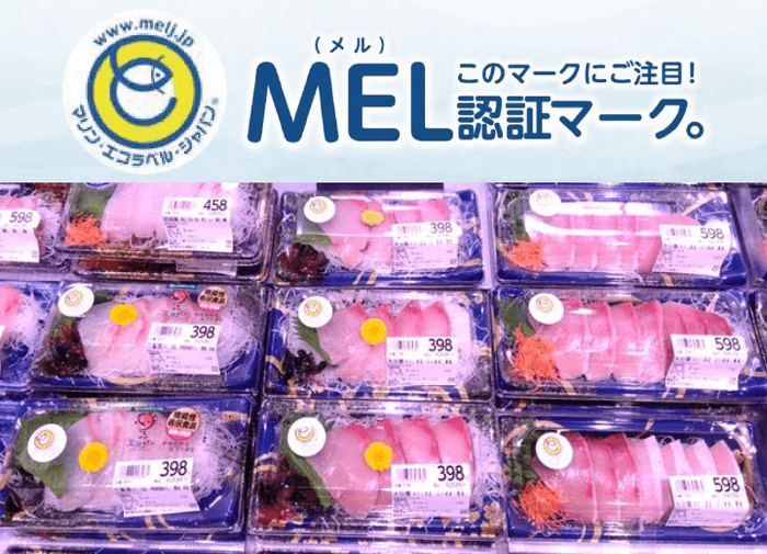 MEL認証とは、多様性に恵まれた豊かな海に囲まれる日本の特徴を反映した、世界に認められている日本発の水産エコラベル認証制度。水産資源の持続性や環境に配慮した生産者(漁業・養殖業)、その水産物を取り扱う加工業者・流通業者を第三者審査機関が審査し、認証を取得することでMELマークを表示してお客様にお届けすることができます。