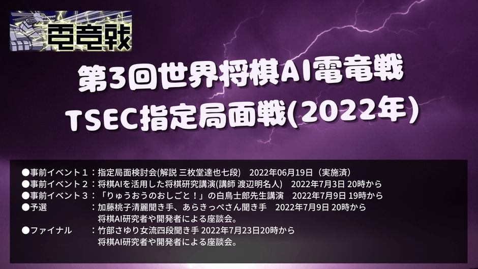 第3回世界将棋AI電竜戦TSEC指定局面戦 (2022年7月9日、7月23日)の開催