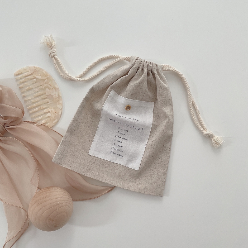 ナチュラルな印象のキナリのポーチは、YouTubeでも人気の『What's in my porch?』から着想を得てLiilasがデザイン。普段ポーチに入れているアイテムをatelier MERYのメンバーからヒアリングし、デイリーユースにちょうどいいサイズ感に仕上げています。