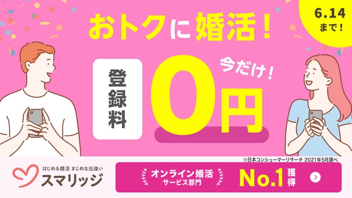 オンラインで完結する婚活支援サービス「スマリッジ」で、期間内の登録で登録料6,600円が0円に!