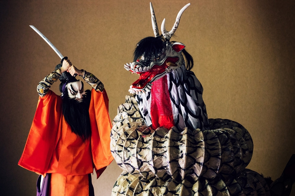 数々の日本神話の舞台とされ、出雲大社をはじめとする多くの神社が点在する島根県。神様に奉納するために舞われる「神楽」が盛んな土地です。界 出雲では、この地域に伝わる伝統芸能「神楽」をスタッフが披露します。演目は出雲にまつわる神話であり、石見神楽(いわみかぐら)のハイライトでもある「大蛇(オロチ)」。鮮やかな衣装をまとったスタッフが、軽快なお囃子に合わせてダイナミックに舞います。
