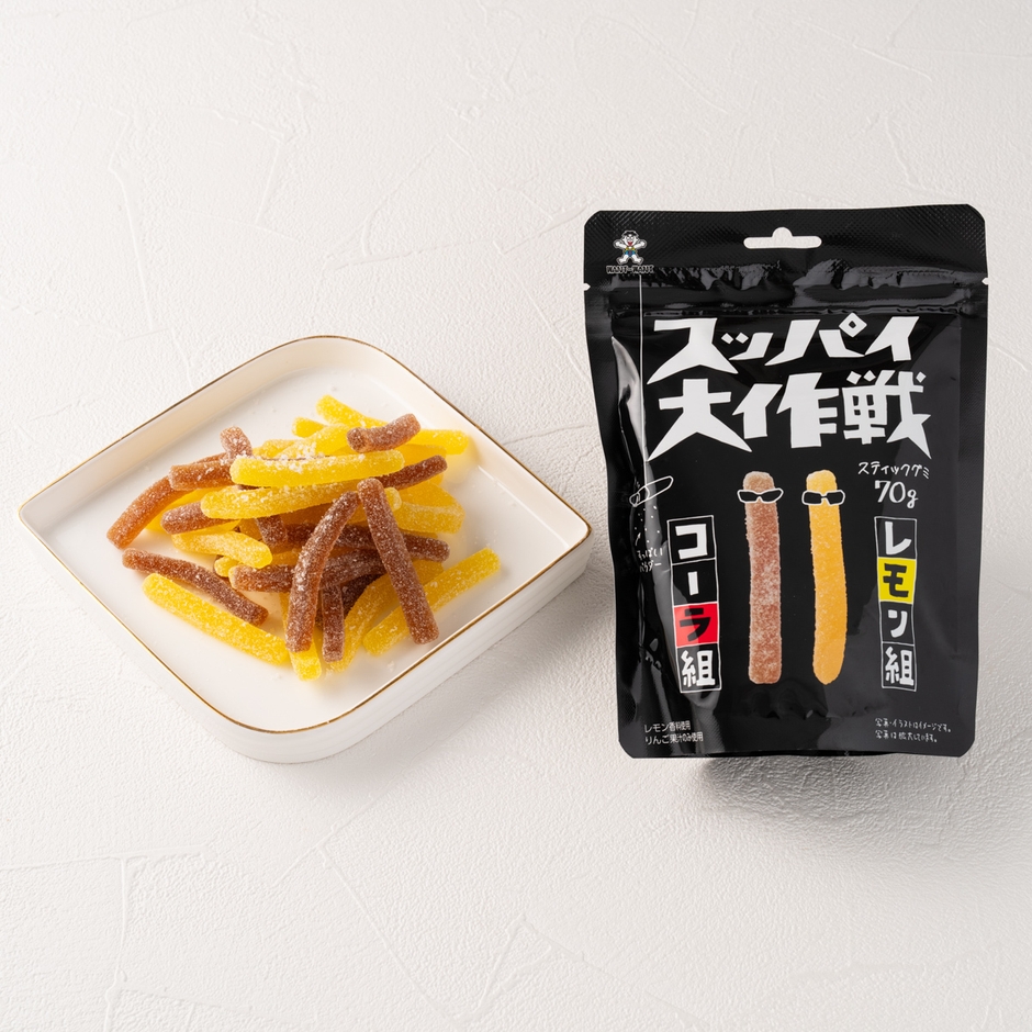 「スッパイ大作戦」は、ハードな食感と甘酸っぱいパウダーが特徴のスティック状グミで、やみつきになる食感と味わいがZ世代にも人気。2019年秋に「コーラ&レモン」の発売以降、10種類以上のフレーバーを展開し、全国のDAISOやスーパーなどで販売中の人気シリーズです。