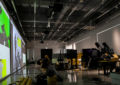 「当社では、デジタル×リアルをテーマに、映像・照明機器を連動させて博物館、美術館、文化・商業施設、舞台美術などのプロジェクションマッピング、VRコンテンツの制作などを手掛けています。こうした施設で投影する映像は、多くが巨大なサイズの展示であり、それを実寸でプロトタイピングするために広大なスクリーンが設置できる場所が必要でした。ここで実際に投影してクライアントとともに映像を複数回チェックし、改善点を都度フィードバックして徐々に精度を上げていきます。やはり実物大で確認できるのは何にも代えがたい強みです」(渡辺氏)