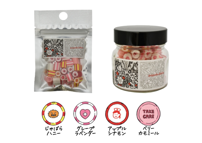 そこで、「世界一おもしろいお菓子屋さん」アート・キャンディ・ショップ「PAPABUBBLE/パパブブレ」は、贈るひとの気持ちが伝わる、デザインや味にこだわった手作りののど飴を開発。2021年11月1日(月)より贈るのど飴「のど飴ミックス」や新しいスタイルのキャンディ「フレーバーマドラー」を発売いたします。