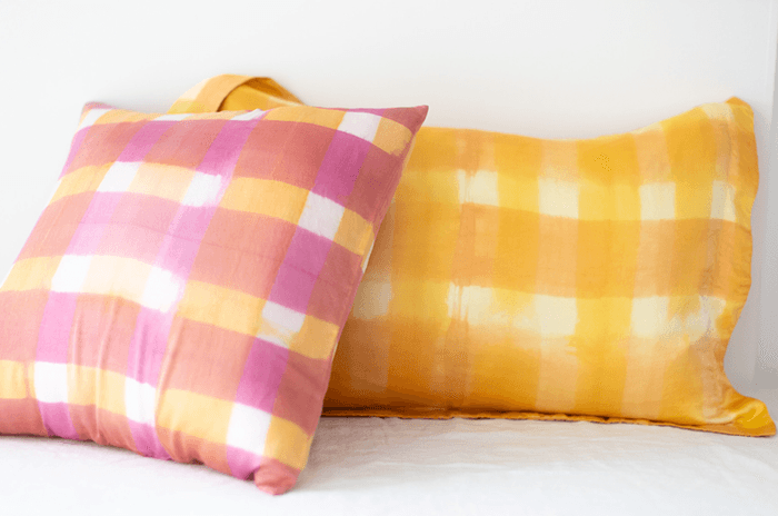 単色の無地染めはもちろん、タイダイや、板締め染めなどの技法で、複数の色を使った柄物を作ることも可能です。天然繊維がよく染まり、化学繊維は薄く染まります。