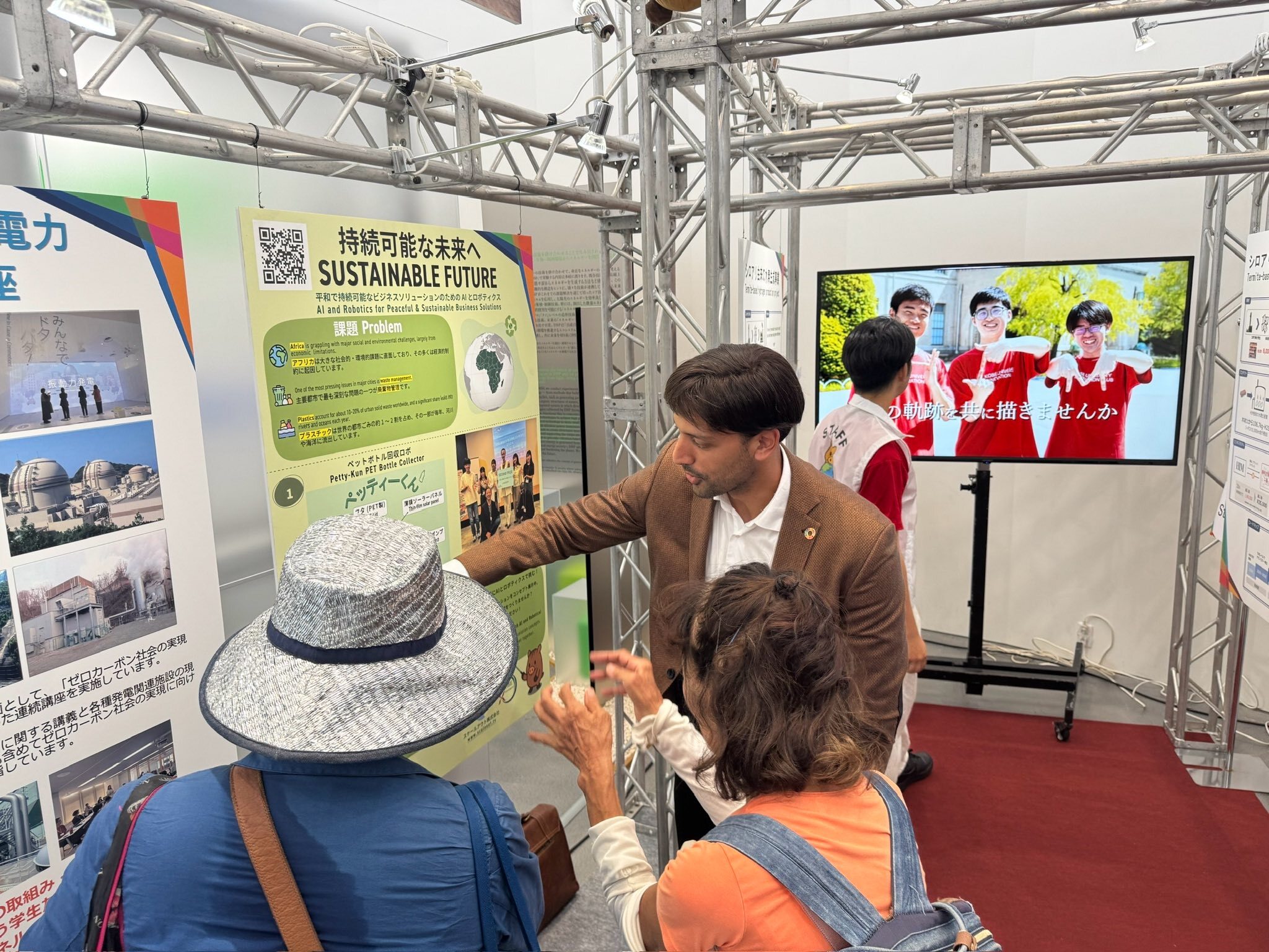 この展示では、神戸大学ブース内にて、アフリカ都市部のプラスチック課題に対してAIを活用したリサイクル支援コンセプトを提示しました。大学エコシステム「ひょうごSDGsオープンイノベーション」が主催し、神戸大学SDGs推進室が事務局を担う「SDGs未来ビジネス学生コンテスト」をスケールアウトはサポートしています。