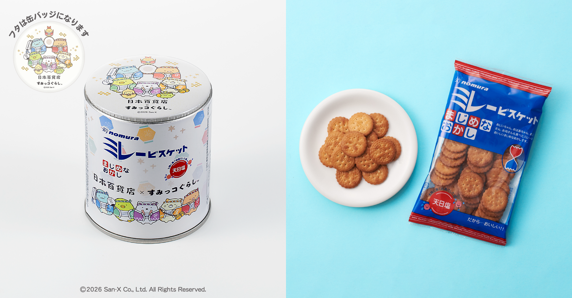 「ニッポンの百貨をおもしろく。」をコンセプトに、日本全国のこだわりの食品や雑貨をセレクトし、販売する株式会社日本百貨店(本社:東京都港区、代表取締役社長:浮ケ谷 祥)、以下:日本百貨店)は、サンエックス株式会社(代表取締役社長:千田 洋史/本社:東京都千代田区/以下サンエックス)との期間限定コラボ企画「日本百貨店×すみっコぐらし」と題しまして、日本百貨店店頭でのすみっコぐらしコラボ商品を2026年1月9日(金)より販売開始いたします。