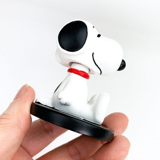 台座の上にちょこんと座るポーズがかわいい、スヌーピーのフィギュアです。首の部分が可動するので、ユラユラと揺れてさらにキュート♡