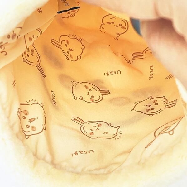 ちいかわのふわふわ素材のフェイス巾着。外見だけではなく、内生地までかわいすぎる反則級な癒しアイテムです。