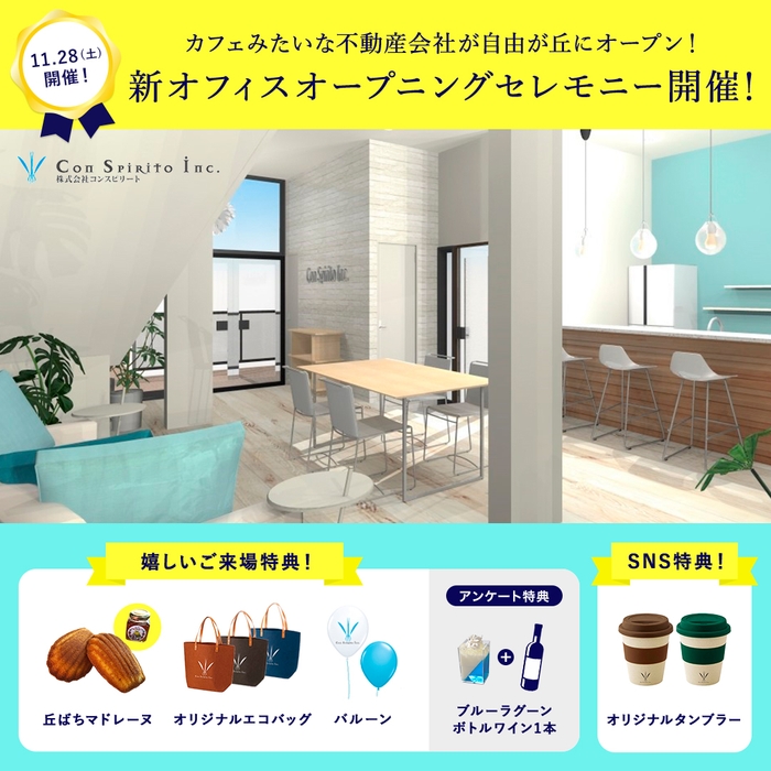 株式会社コンスピリート(所在地:東京都目黒区自由が丘、代表取締役:村上幸生)は11/28(土)に自由が丘新オフィスでオープニングセレモニーを開催いたします。