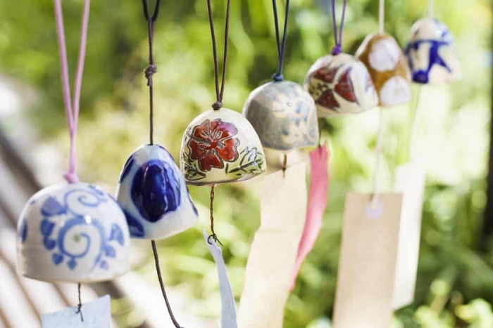 イベントの会場には、やちむんの風鈴を飾ります。伝統的な柄の唐草模様や、ハイビスカスや水玉模様など、色や柄がさまざまな、可愛い風鈴がエントランスを涼しく演出。ビールを片手に、やちむんの「チリンチリン」と鳴り響く涼しい音を聞いたり、一緒に写真を撮ったり、思い思いに楽しい時間を過ごせます。
