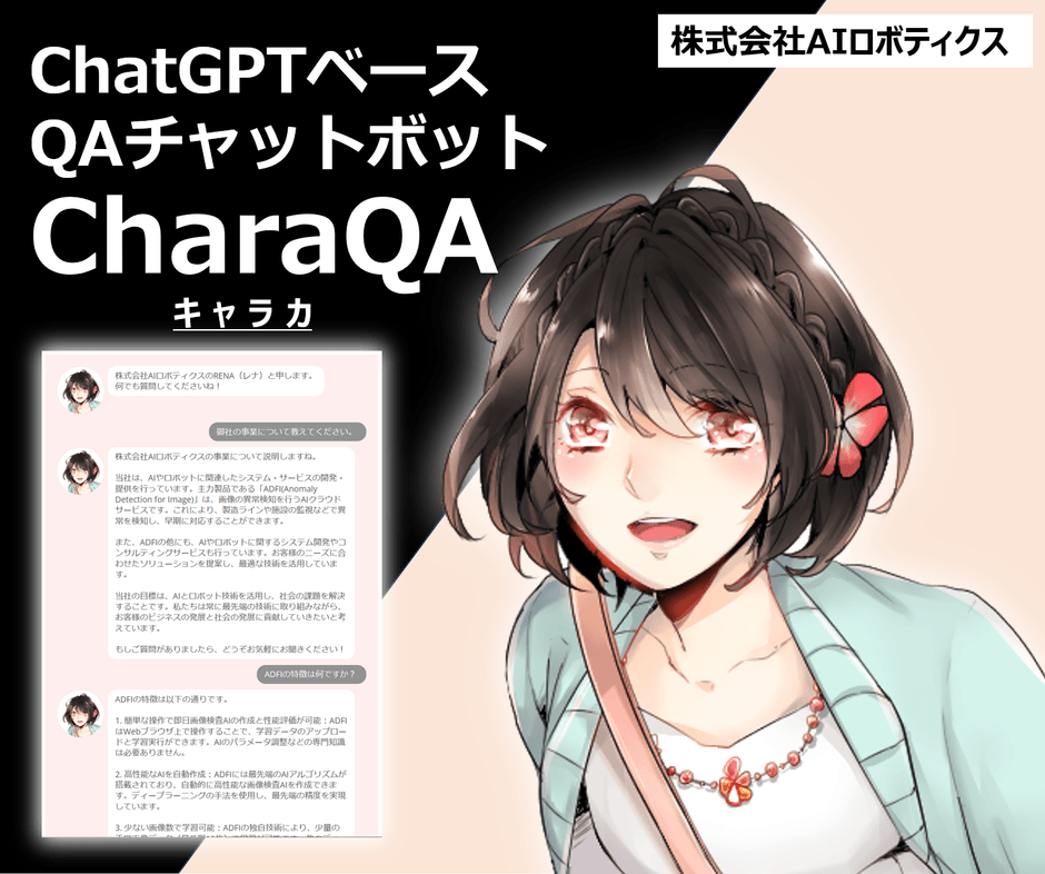AI開発サービス「ADFI」の提供やAIコンサルティングを行う株式会社AIロボティクス(本社:神奈川県横浜市)は、ChatGPTなどの生成AI利用時の個人情報・機密情報の流出リスクを解消する新しいセキュリティ技術「GPTection(ジーピーテクション)」を開発しました。本技術を適用することで、これまでChatGPTを活用できなかった個人情報や機密情報を含むデータに対してChatGPTを活用することが可能になります。また、本技術を搭載したヘルプデスクや社内問い合わせ対応向けのQAチャットボット「CharaQA(キャラカ)」を2023年8月2日(水)にリリースいたしました。