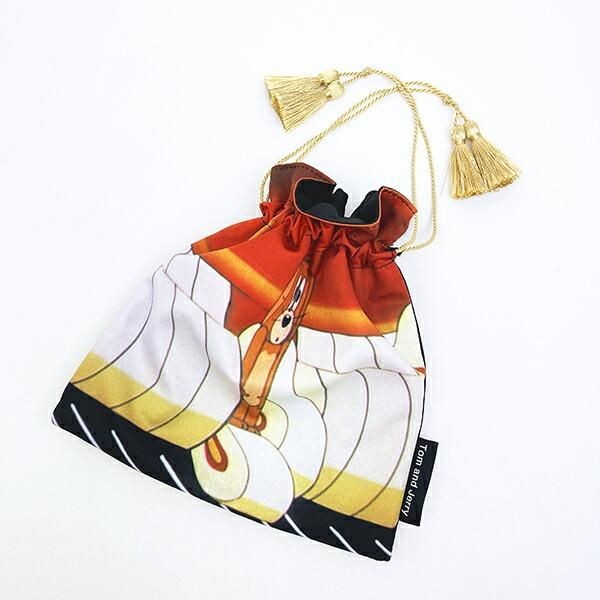 こちらは巾着ポーチです。ちょっとレトロ感もあるイラストと色合いに落ち着きますね。
