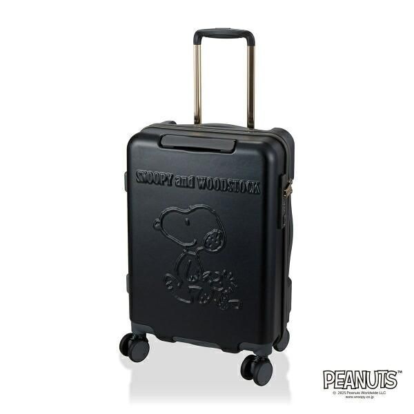 こちらはシンプルなブラックの、スヌーピーとウッドストックがエンボスデザインされたスーツケースです。