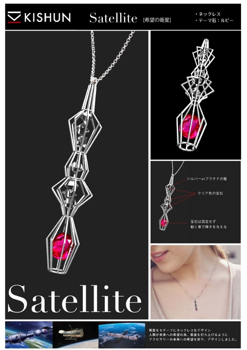 受賞理由:ジュエリーに付いている宝石は、爪で留められるものがほとんどですが、このネックレスは「あえて宝石は固定せず動くことで輝きを与え」ており、様々な角度から宝石の輝きや美しさを感じることができます。まさにこれまでの考え方を「180度変わるような」新しいデザインであると思います。