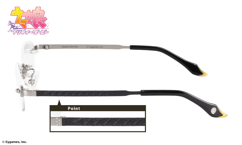 テンプル(つる)には、勝負服の編み上げ模様を立体的にあしらいました。