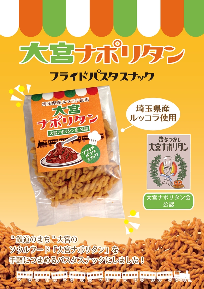 「大宮ナポリタン フライドパスタスナック」は、新型コロナウイルス感染症の影響で客足減となっている大宮の飲食店の皆様を応援するべく、お客様にお買い求めやすい価格・パッケージに変更し、更に大宮ナポリタンを全国に発信しようという思いでリニューアルを企画しました。
