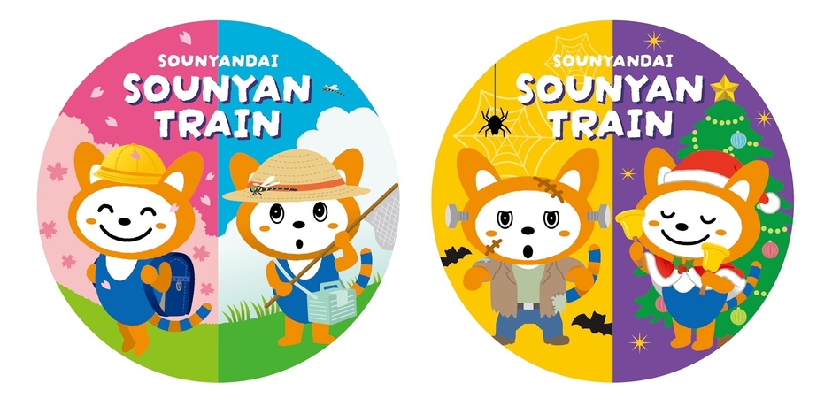 今回は、相鉄いずみ野線 湘南台駅で駅名にちなんで展示している「そうにゃんだい」ディスプレイが2026年で10周年を迎えることから、これまで展示してきた四季折々のそうにゃんイラストを採用しました。車両の前面や側面は、春夏秋冬をイメージしたイラストを、車内は、1号車は2016年、2号車は2017年と10号車まで順に年ごとのイラストをラッピングします。季節の風物詩を楽しむそうにゃんをデザインすることで、ご利用のお客さまにも、一緒に季節の雰囲気をお楽しみいただけます。