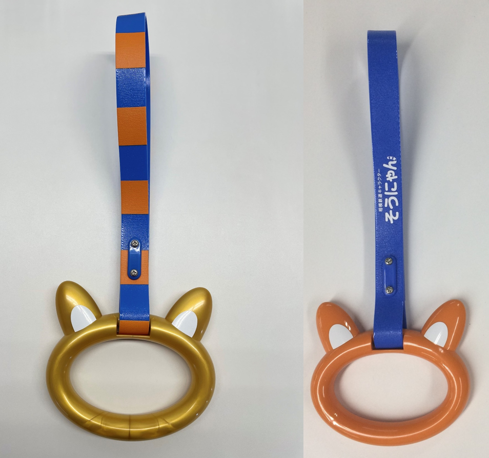現在、12代目そうにゃんトレインで設置している「ゴールド&しっぽ柄つり革」と「初代つり革」を13代目そうにゃんトレインでも使用します(1両に2本、1編成で20本)。