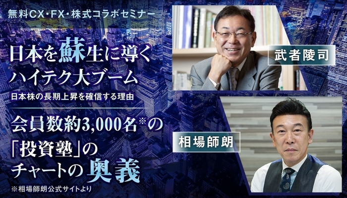 サンワード貿易株式会社(本社:東京都新宿区、代表取締役社長:依田 年晃)は、個人投資家を対象とした無料投資セミナー『武者陵司氏&相場師朗氏コラボ投資セミナー』を9月6日(日)に東京開催、9月26日(土)に札幌開催いたします。