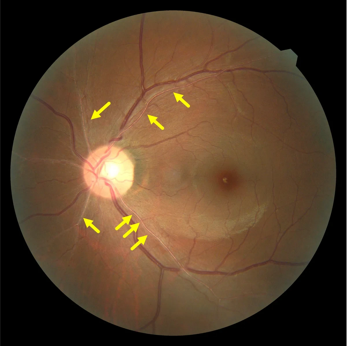 ちなみに、動脈と静脈の太さの比は本来2:3と言われておりますが、この写真では1:5ぐらいになっていますね。