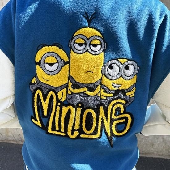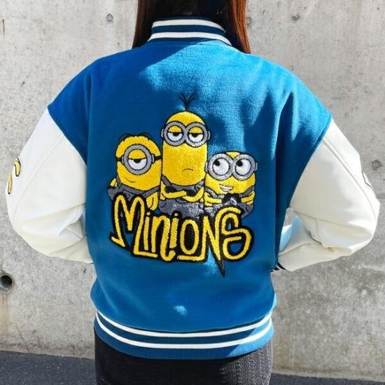 ミニオンズのかわいさに、スタジャンのクールさをマッチングさせたイケてるキャラスタジャンです。これ取り入れるだけで今日のファッション決まってしまいそうです。