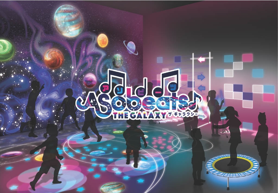 「Asobeats♪ the GALAXY(アソビーツ ザ ギャラクシー)」は、プロジェクションマッピングやインタラクティブの最新技術を駆使し、小さいお子様から大人まで、体をいっぱい動かして遊べる楽しい体感型デジタルアトラクションです。