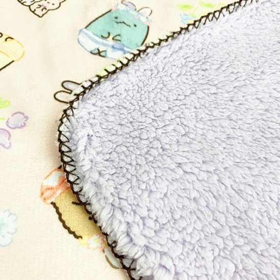 こちらはすみっコぐらしのキャラクターがうさぎになっているデザイン。ふわふわ生地が気持ちよいフランネルブランケットは、サイズも大きめなので1枚あると便利ですよ♪