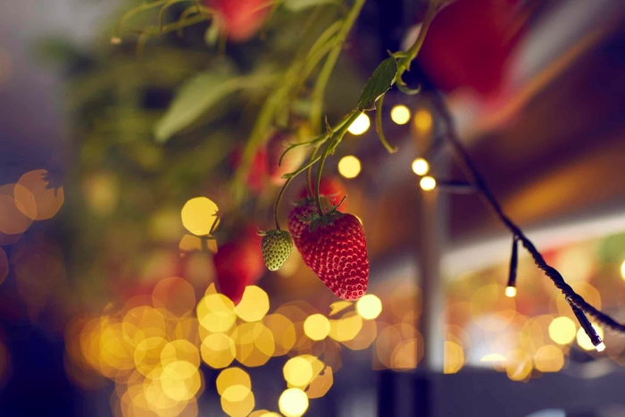2 イルミネーション輝くハウスを貸切りにして行う夜のいちご狩り