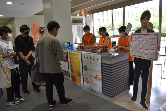 横井副社長は「学生さんのアイデアで、オープンキャンパスの販売は2日とも完売でした。復興支援にも協力できればと」と話し、田代学部長は「FSPはアイデア提案で終わるケースが多い中、実践の場を提供してもらい有難い。復興支援の活動にも協力していただき心強い」と応えました。