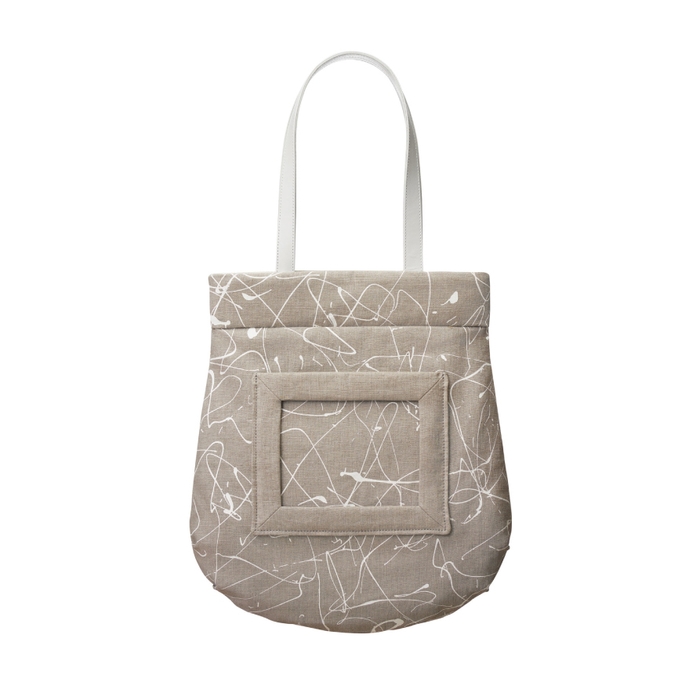 洗いをかけた麻に、キャンバスに絵を描いたような顔料プリントをしています。