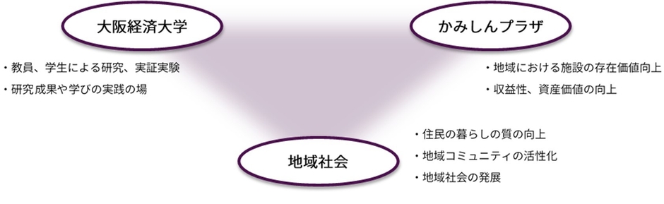 大阪経済大学(学長:山本 俊一郎/所在:大阪市東淀川区大隅2-2-8)は、三菱UFJ信託銀行株式会社(取締役社長:長島 巌/所在:東京都千代田区丸の内1-4-5)、日本都市ファンド投資法人(執行役員:西田 雅彦/東京都千代田区丸の内2-7-3 東京ビルディング)と2022年4月28日に締結した「産学連携活動に係る連携及び協力に関する協定」に則り、大阪経済大学及びかみしんプラザが立地する東淀川区上新庄地域の社会のより一層の発展を目的として、相互に協力し2022年8月から産学連携活動を実施、推進いたします。